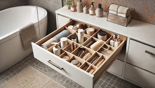 Lavabonun altındaki alanı etkili bir şekilde kullanmak için çekmece bölümleri ve ayrıcıları tercih edebilirsiniz. Bu bölgeyi temizlik malzemeleri veya yedek havluları saklamak için ideal hale getirebilirsiniz.