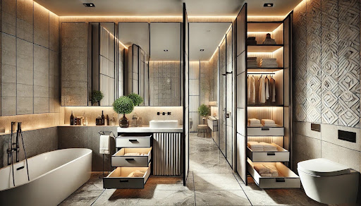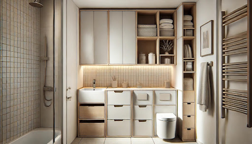 Gömme dolaplar, küçük banyolar için ideal bir çözüm sunar. Duvar içi alanları kullanarak hem yerden tasarruf edebilir hem de banyonuzu daha modern bir hale getirebilirsiniz.