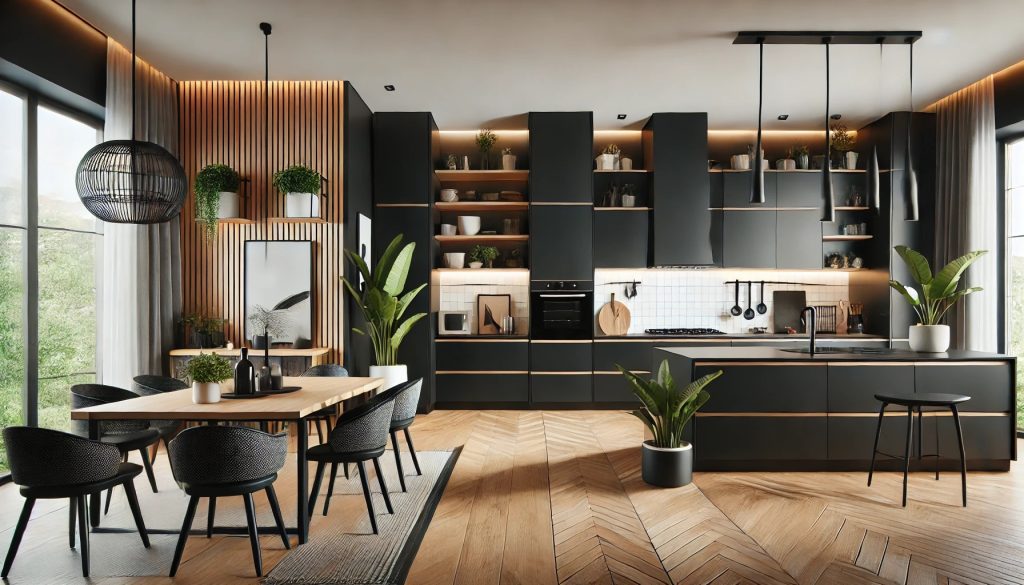Siyah mutfak dolapları, modern ve cesur bir seçimdir. Bu renk, mutfağa lüks bir hava katar. Ancak, siyah dolaplar daha küçük mutfaklarda boğucu olabilir, bu yüzden iyi aydınlatma ile dengelenmelidir.