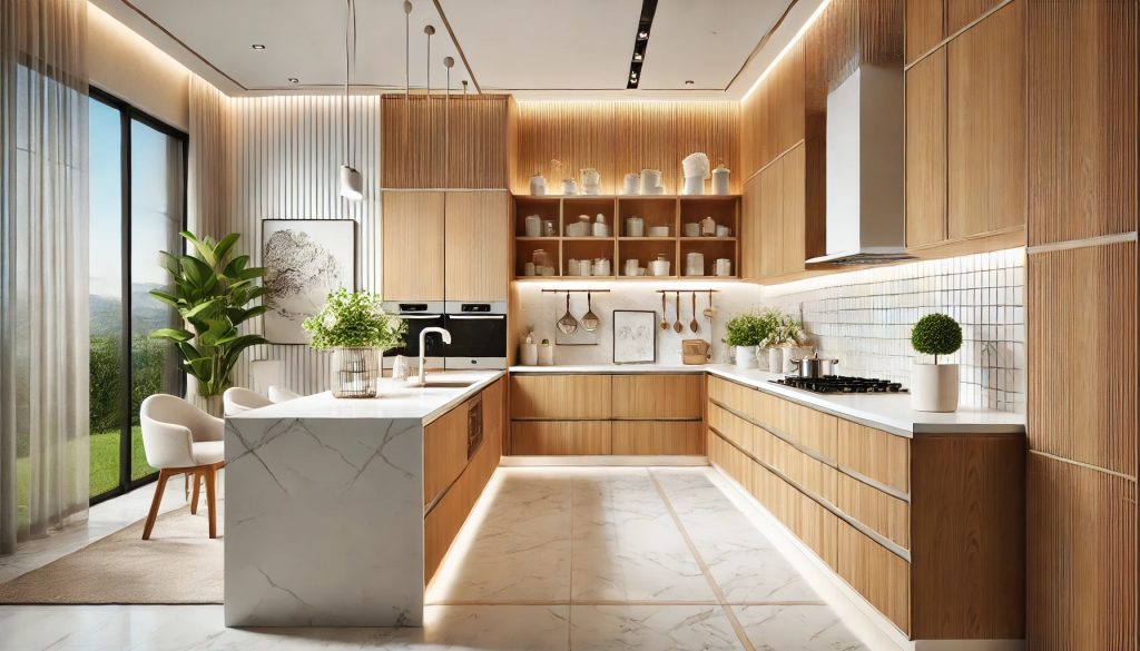 Doğal ahşap tonları, modern mutfaklara sıcaklık ve doğallık katar. Açık meşe veya ceviz gibi ahşap renkleri, hem modern hem de rustik tasarımlar için uygundur.