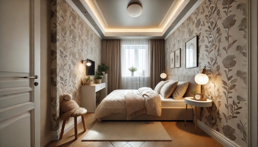 Küçük yatak odalarında açık renkler tercih edilmelidir. Beyaz, krem ve açık gri gibi renkler, odanın daha geniş ve ferah görünmesini sağlar.